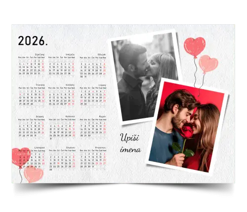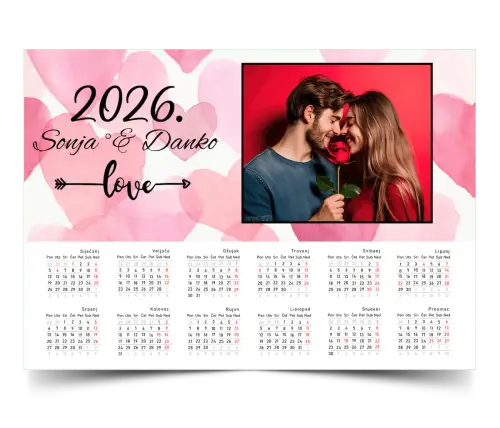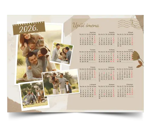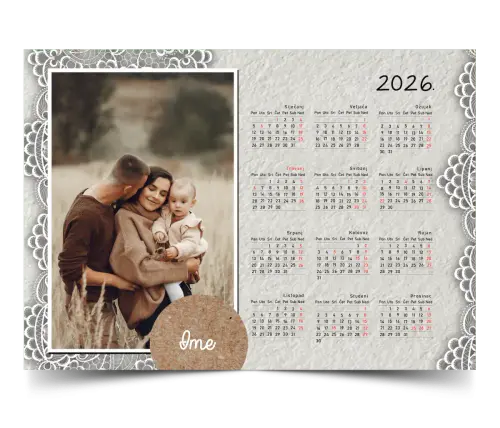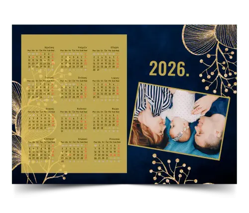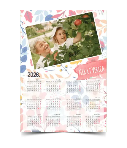 Izradite svoj jednolisni personalizirani foto kalendar s omiljenom slikom i imenom po želji. Moderan dizajn s motivima zelenog lišća savršeno se uklapa u svaki dom ili ured. Narudžba je jednostavna – dodajte svoju sliku i kreirajte jedinstven kalendar za 2026. godinu u samo nekoliko klikova.