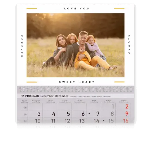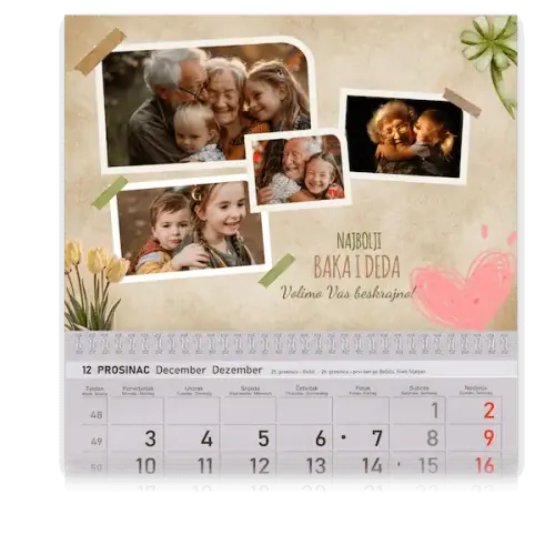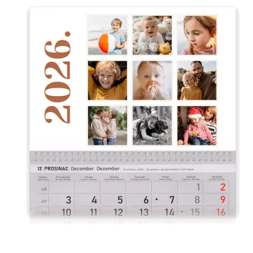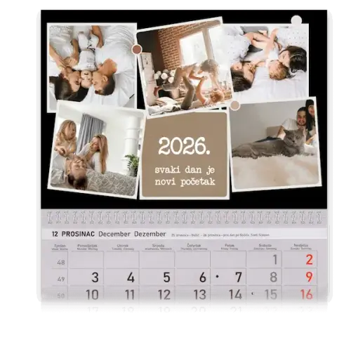 Personalizirani zidni kalendar savršen je način da svaki mjesec započne s osmijehom. Dodajte svoje fotografije i kreirajte unikatni kalendar koji će uljepšati vaš dom ili ured. Idealan kao poklon za obitelj, prijatelje ili posebne prigode – uspomene će biti s vama tijekom cijele godine.