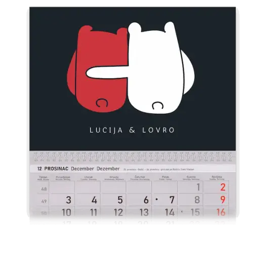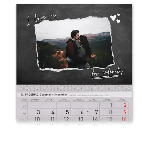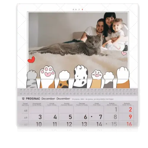 Personalizirani zidni kalendar savršen je način da svaki mjesec započne s osmijehom. Dodajte svoje fotografije i kreirajte unikatni kalendar koji će uljepšati vaš dom ili ured. Idealan kao poklon za obitelj, prijatelje ili posebne prigode – uspomene će biti s vama tijekom cijele godine.