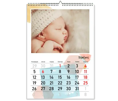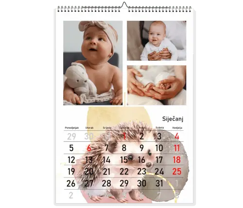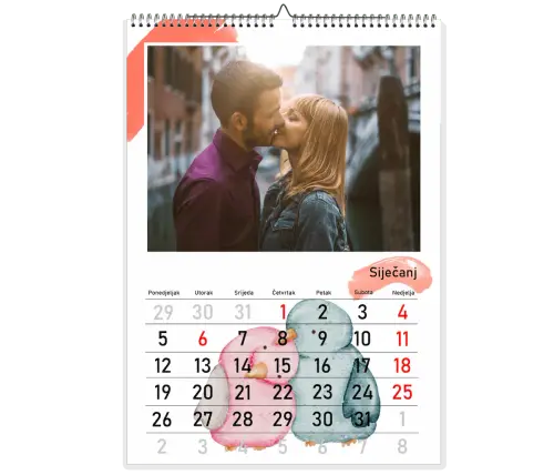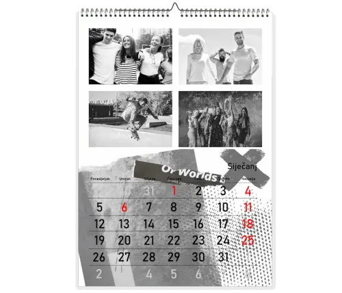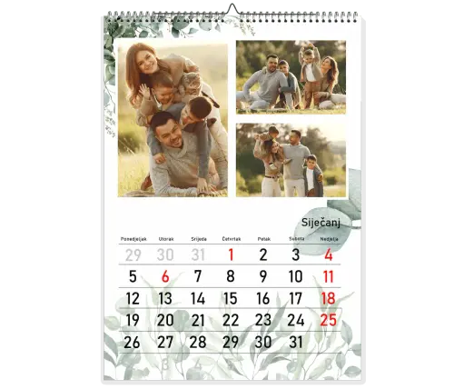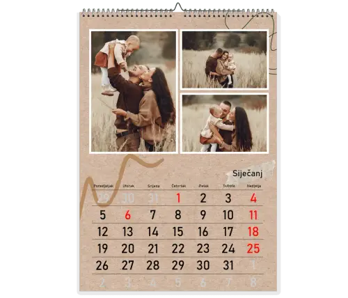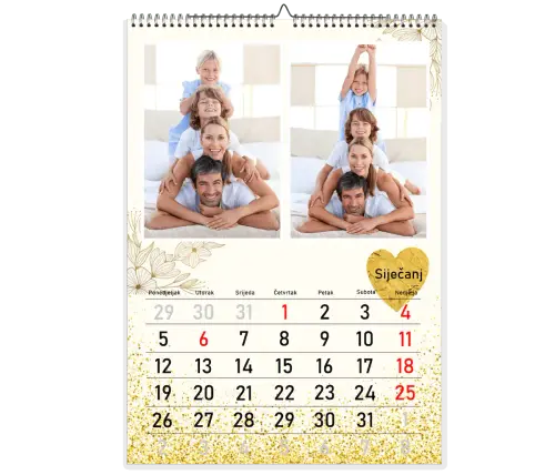 Ovaj kalendar sa fotografijama sastoji se od 13 listova (naslovna + 12 mjeseci) i može sadržavati od 1 do čak 100 vaših slika. Dostupan je u A3 i A4 veličini, a svaka stranica može biti prilagođena tekstom, fotografijom ili temom po želji. Birajte između različitih dizajna – obiteljskih, dječjih, ljubavnih i modernih. Personalizirani kalendar izrađujemo s pažnjom i u visokoj kvaliteti tiska, idealan je kao poklon ili kao ukras za vaš dom i ured.