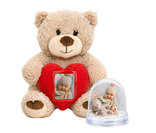 Nježan poklon za najmlađe i njihove obitelji. Mekani medvjedić i vodeni okvir s fotografijom stvaraju toplu uspomenu koju je lijepo pokloniti i sačuvati.
