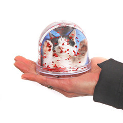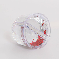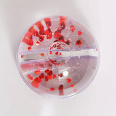 - plastični okvir ispunjen vodom i šljokicama u obliku srca - za dvije fotke veličine oko 6.5x6.5 cm - pakirano u kartonskoj kutiji