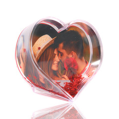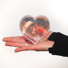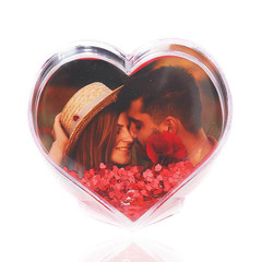 - plastični okvir ispunjen vodom i srcima - za jednu fotku veličine 9x9 cm u obliku srca - pakirano u kartonskoj kutiji