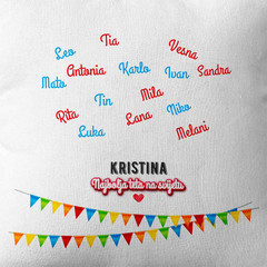 - jastučnica veličine 50x50cm - otisak na jastučnici veličine do 28x28cm - 100% pamuk - pranje na maks. 40 °C - ne sušiti u sušilici - punjenje 100 % polipropilensko vlakno - po želji promijenite tekst