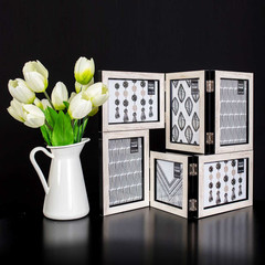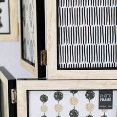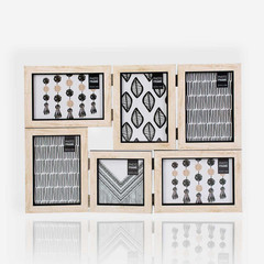 -drveni okvir crno-bež boje -za 6 fotografija (3 okomite, 2 vodoravne i 1 kvadratna) -kukica za vješanje na zid