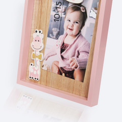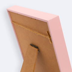 -drveni okvir ružičaste boje s reljefnim elementima -za okomitu fotografiju veličine 10x15cm -vanjske dimenzije su 18.2x23.2 cm -stoji samostalno