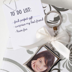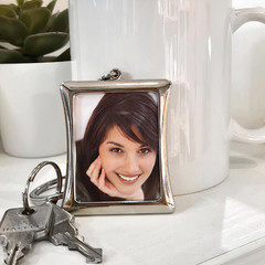- metalni privjesak - metalni prsten za ključeve - za dvije fotografije dimenzija 3.5x4.5 cm - veličina privjeska 4.7x14.5 cm - po želji promijenite fotku i tekst